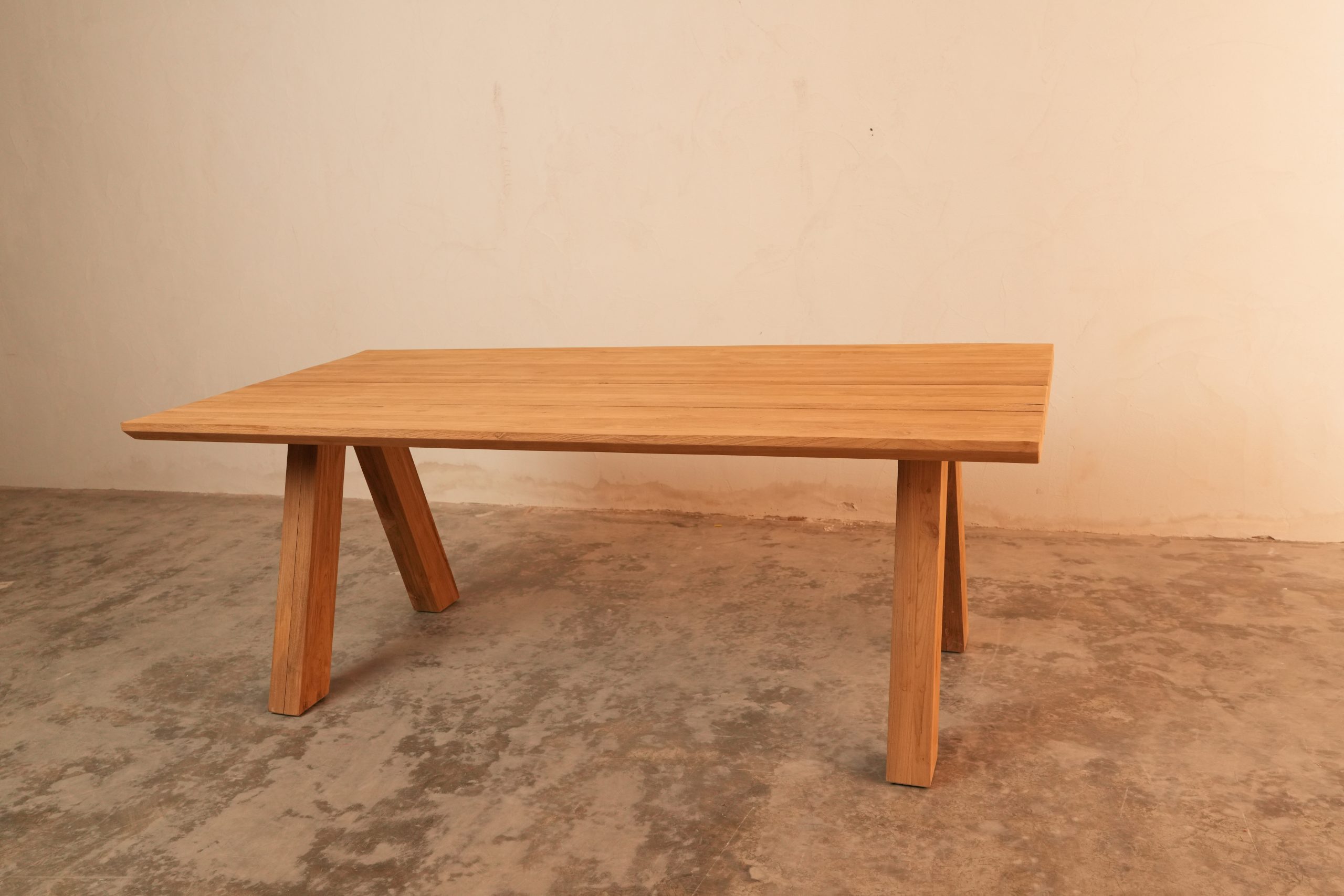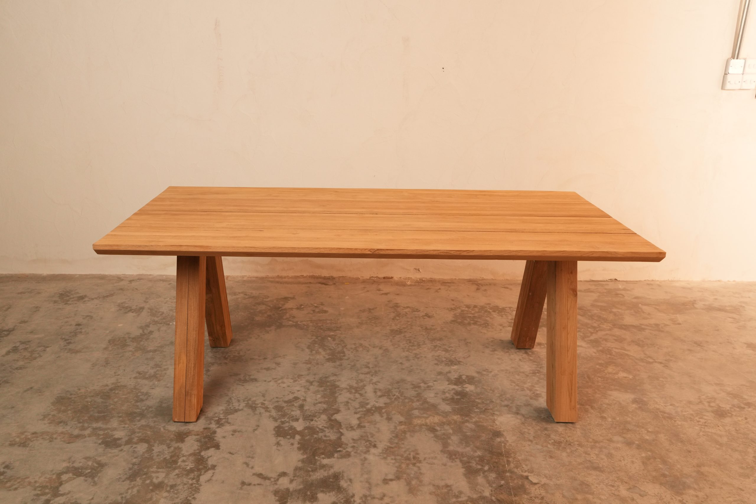 طاولة طعام خارجية بطول 200 سم، بتصميم متين ومقاوم للعوامل الجوية. مثالية لتناول الطعام في الهواء الطلق في الحدائق أو الشرفات، مع توفير مساحة واسعة للجلسات العائلية.